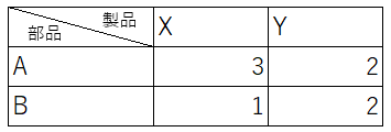 この問題は部品数に対して制約をかけ、利益(ともに1万円なので今回は個数の総和)を最大化することを目標とします。